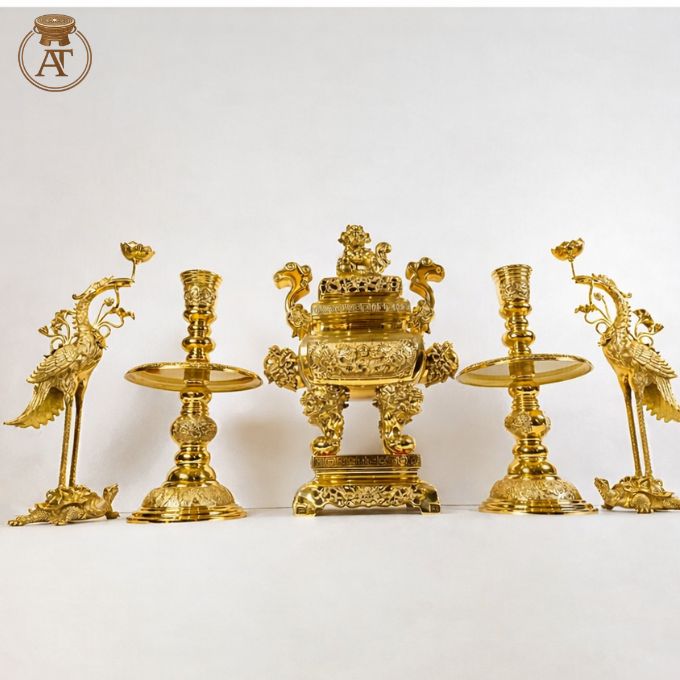 Ngũ sự đồng Đài Loan tạo sự trang nghiêm cho bàn thờ