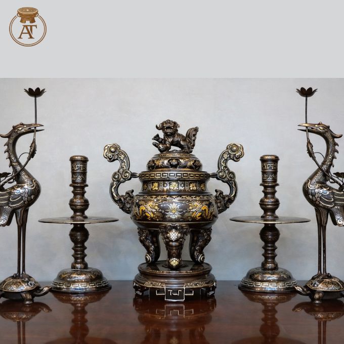 Ngũ sự khảm ngũ sắc là dòng sản phẩm nổi bật trong không gian thờ tự với thiết kế tinh xảo, độ bền vượt thời gian. Tại đồ đồng An Thịnh, mỗi chi tiết đều được chế tác tỉ mỉ từ đôi bàn tay nghệ nhân lành nghề, mang đến vẻ đẹp sang trọng và linh thiêng cho bàn thờ gia tiên.