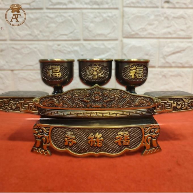 • Bộ kỷ chén thờ (3 hoặc 5 chén): Dùng để dâng nước sạch hoặc rượu, thể hiện lòng thành kính và sự thanh khiết của con cháu đối với tổ tiên trong mỗi kỳ lễ cúng.