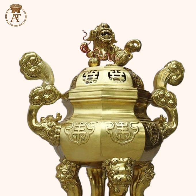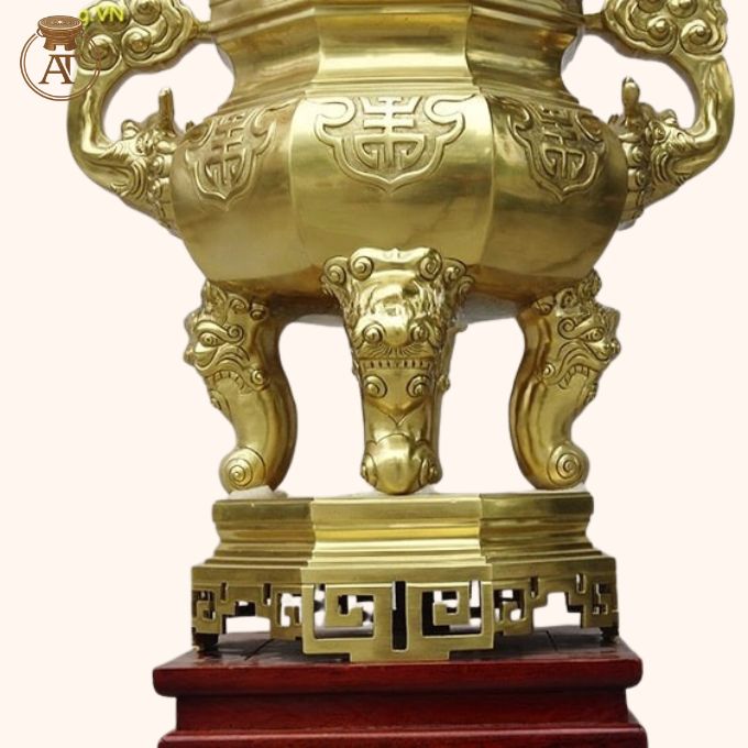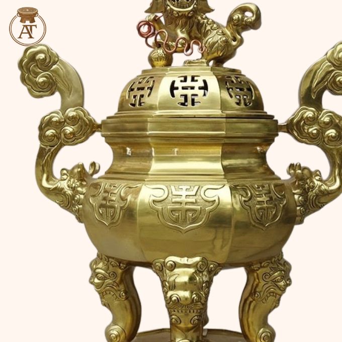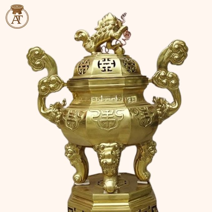 Đỉnh đồng bát giác được chế tác hoàn toàn thủ công bởi nghệ nhân lành nghề, đảm bảo giữ trọn thần thái truyền thống tại An Thịnh.