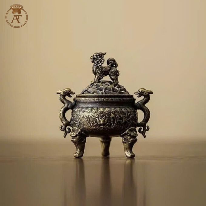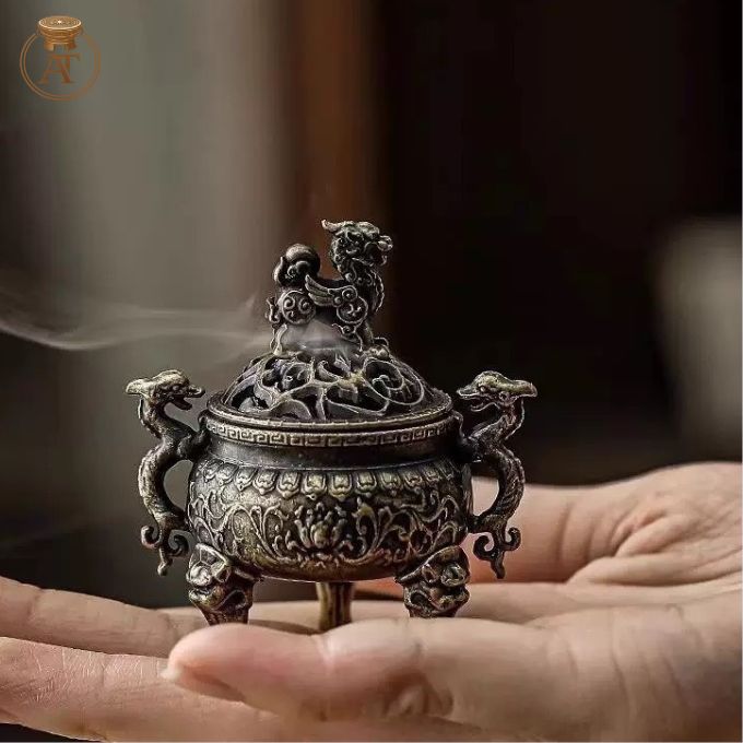 Đỉnh đồng đốt trầm mini được chế tác hoàn toàn thủ công bởi nghệ nhân lành nghề, đảm bảo giữ trọn thần thái truyền thống tại An Thịnh.