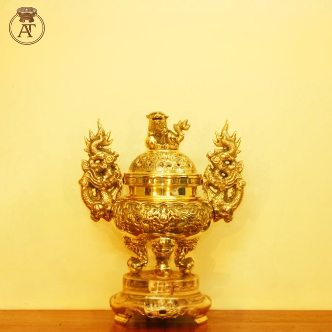 Chạm khắc tỉ mỉ: Họa tiết rồng phượng, hoa văn cổ điển trên đỉnh đồng và các vật phẩm được khắc nổi rõ nét, đồng đều hai mặt, đảm bảo độ sắc sảo và uy nghi.