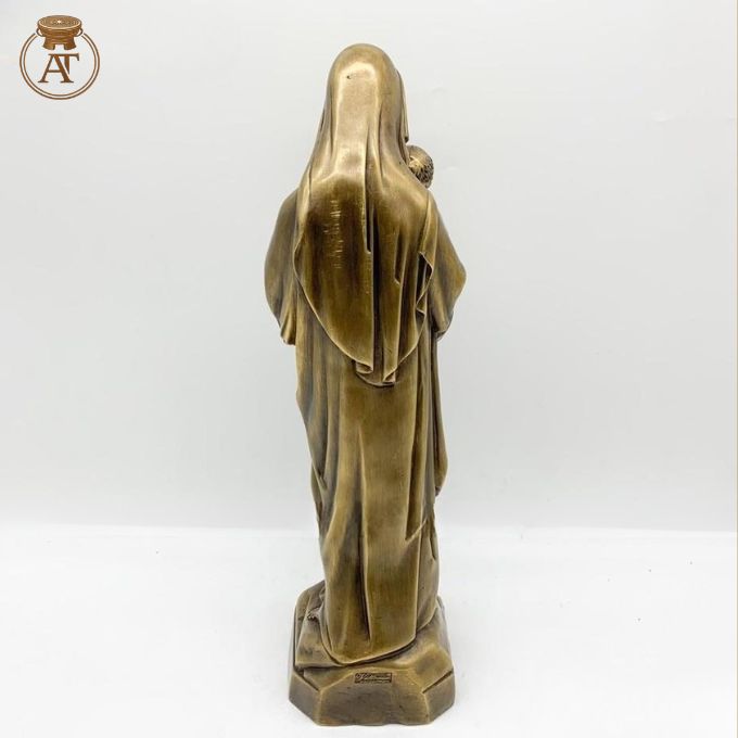 Với chất liệu đồng hun giả cổ mang vẻ đẹp trang nghiêm, cổ kính, hình ảnh Đức Mẹ Maria thể hiện sự hiền từ, che chở và ban bình an, phù hợp trưng bày tại bàn thờ, phòng cầu nguyện, gia đình Công giáo hoặc làm quà tặng ý nghĩa trong các dịp đặc biệt.