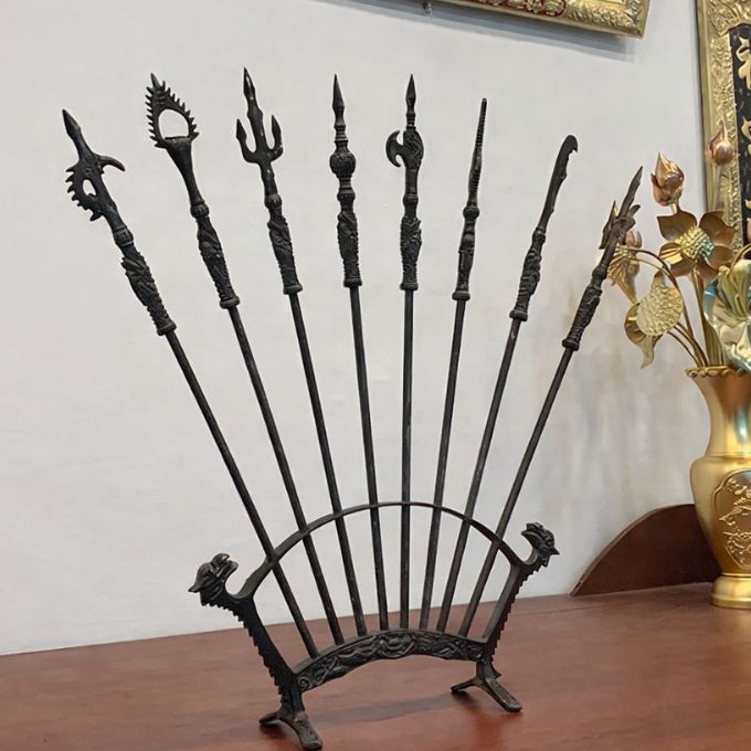 | Hình thức | Bộ bát bửu 8 binh khí: Đao, kích, thương, mác, phủ việt, cờ tiết mao và bảng có chữ |