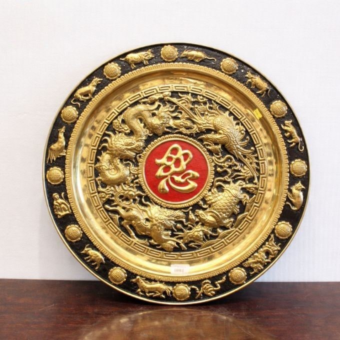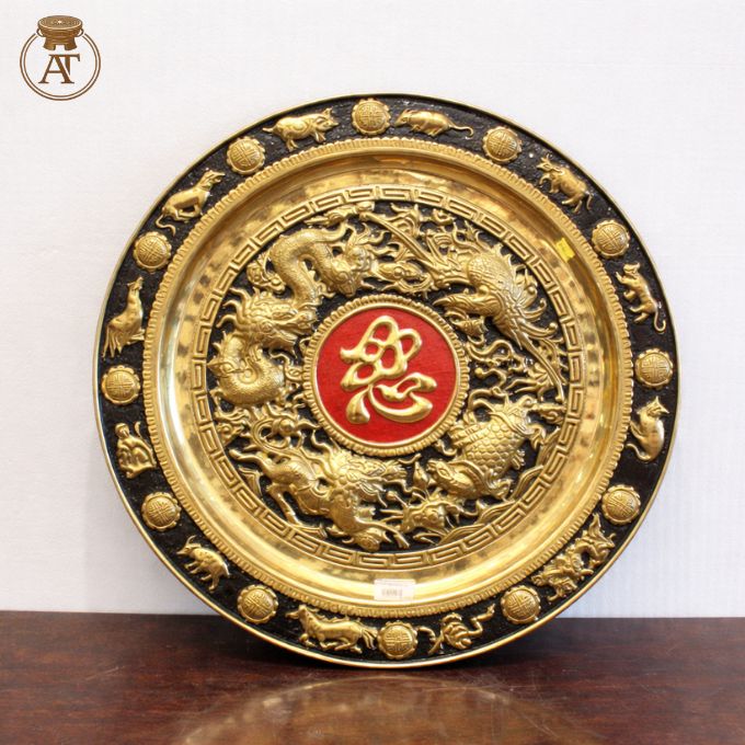 – Mâm đồng treo tường dập nổi chữ thọ | Phong thủy may mắn