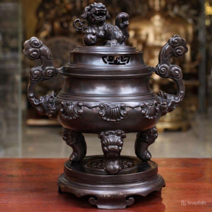 • Với bề mặt xử lý giả cổ trầm mặc, lư đồng phù hợp trưng bày trang nghiêm trong không gian thờ gia tiên, bàn thờ Phật hoặc nhà thờ họ.