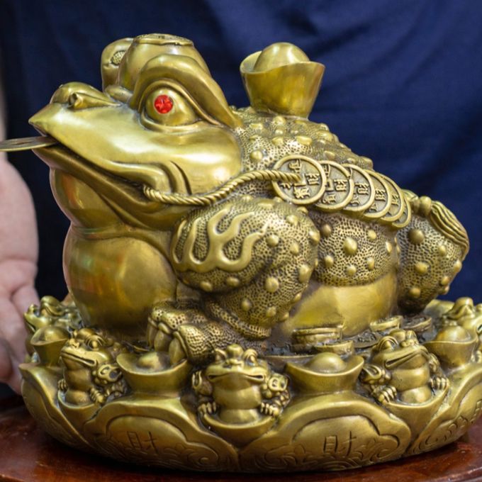 Con cóc ngậm đồng tiền bằng đồng tượng trưng cho chiêu tài