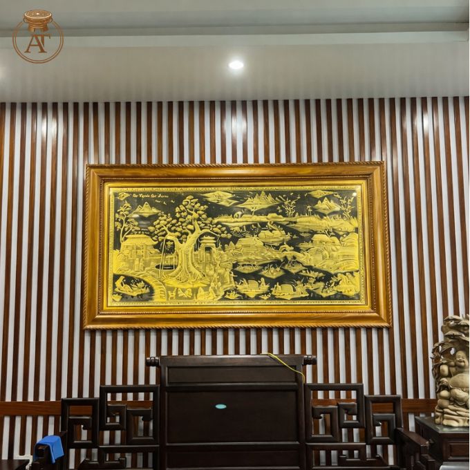 Tranh đồng cội nguồn quê hương treo trong không gian trang trọng