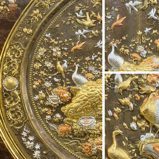 | Kích thước | Mâm chạm tích Phu Thê Viên Mãn: đường kính 1m07 Khung tranh: khổ vuông 1m33 Hoặc theo yêu cầu |