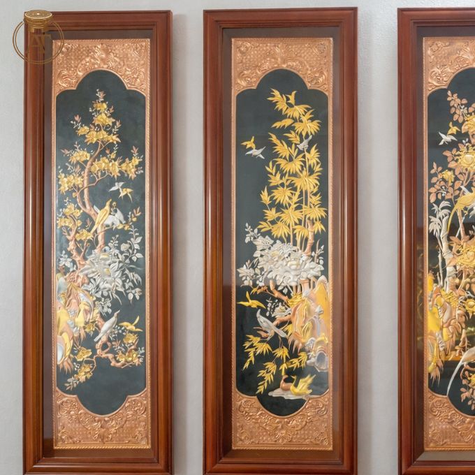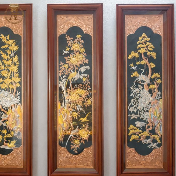 Tranh tứ quý mạ vàng được chế tác hoàn toàn thủ công bởi nghệ nhân lành nghề, đảm bảo giữ trọn thần thái truyền thống tại An Thịnh.