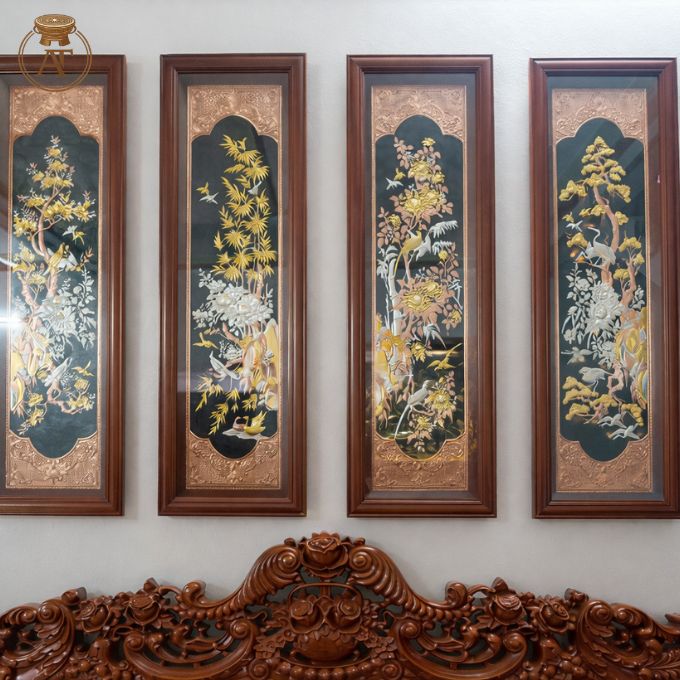 Tác phẩm mỹ nghệ truyền thống, tượng trưng cho bốn mùa trong năm và vòng tuần hoàn sinh trưởng bền vững của vạn vật. Bộ tranh thường gồm Tùng – Cúc – Trúc – Mai, mang ý nghĩa phúc lộc, trường thọ và cuộc sống sung túc, đủ đầy.