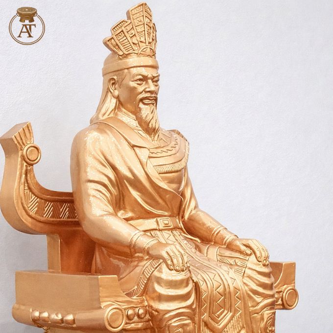 Tượng đồng Vua Hùng với áo bào hoa văn cổ truyền chạm khắc tinh xảo