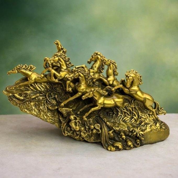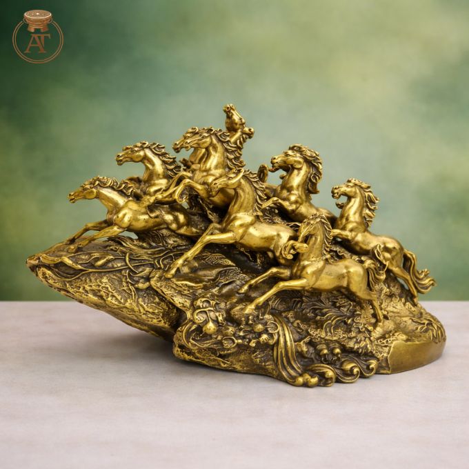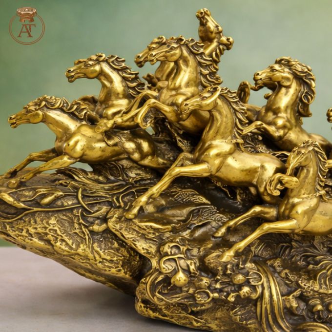 Tượng mã đáo thành công bằng đồng khắc họa bảy chiến mã phi nước đại đầy khí thế và năng lượng.