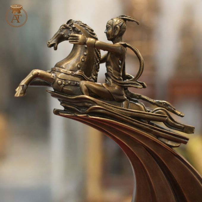 Kiểu dáng, tư thế: Tư thế cưỡi ngựa phi lên không trung, tay cầm roi sắt vươn dài, thân hình hướng về phía trước tạo cảm giác khí thế, oai phong.