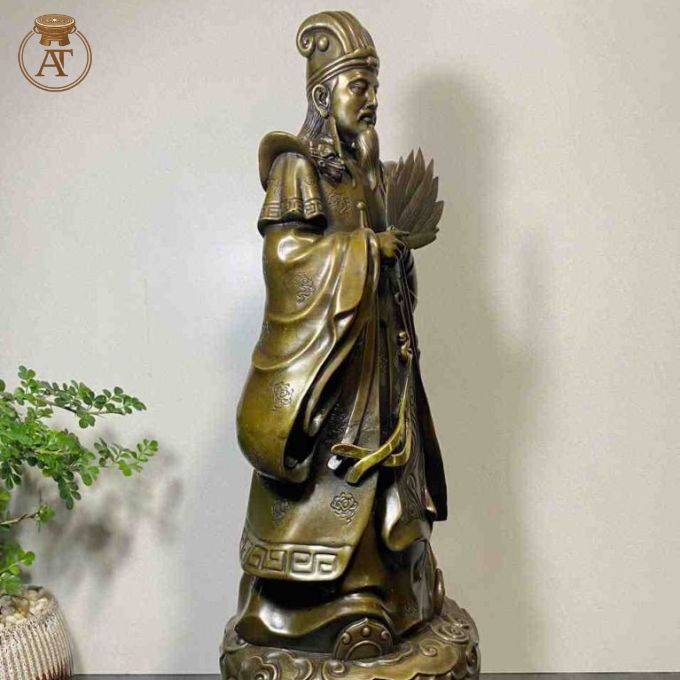 Được chế tác từ chất liệu đồng thau với kỹ thuật đúc thủ công tinh xảo, bức tượng không chỉ mang giá trị thẩm mỹ cao mà còn hàm chứa ý nghĩa phong thủy sâu sắc. Mẫu tượng đồng thường được trưng bày tại phòng làm việc, thư phòng hoặc không gian thờ danh nhân, với mong muốn cầu trí tuệ minh mẫn, sự nghiệp hanh thông và tầm nhìn chiến lược bền vững.