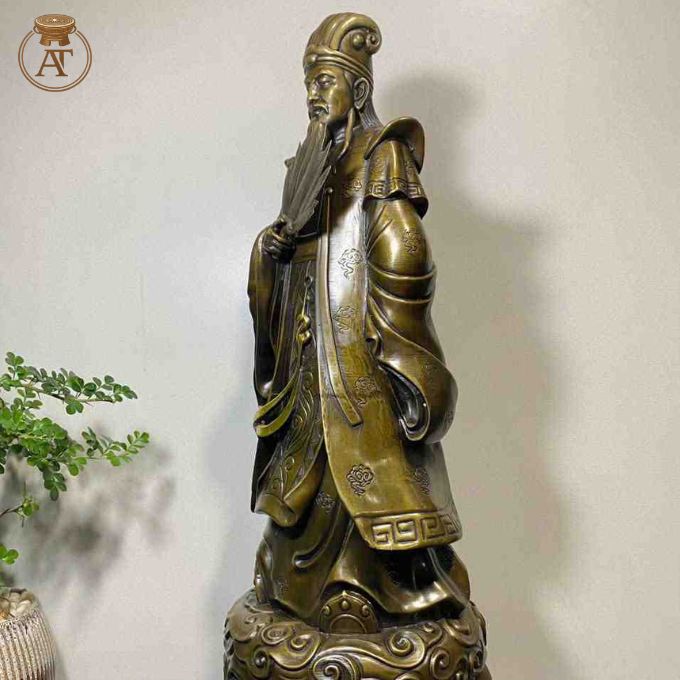 Tượng Gia Cát Lượng Cầm Quạt Đồng Thau không chỉ là tác phẩm mỹ thuật mà còn ẩn chứa giá trị phong thủy sâu sắc.