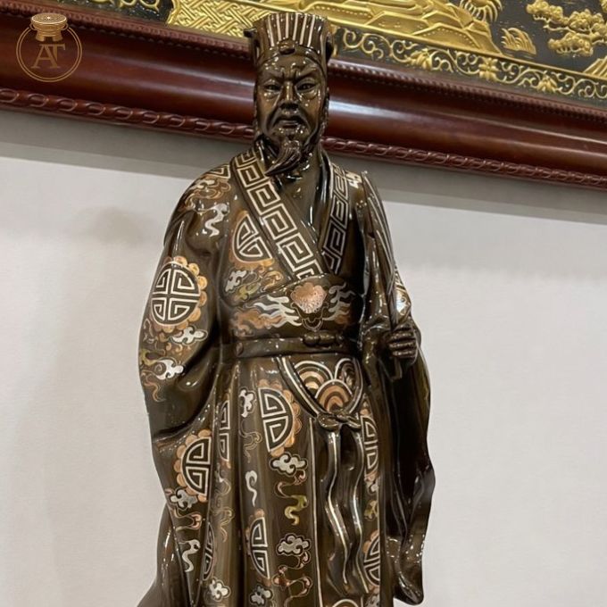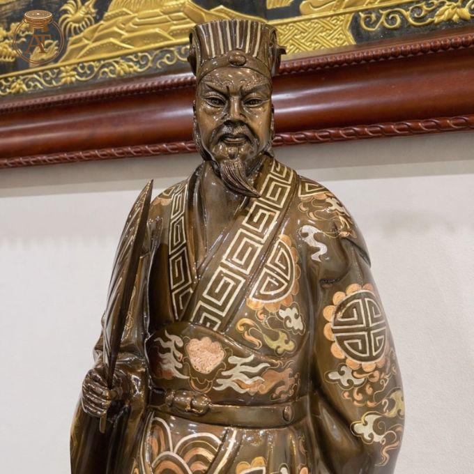 Tượng Gia Cát Lượng khảm tam khí được chế tác hoàn toàn thủ công bởi nghệ nhân lành nghề, đảm bảo thể hiện trọn vẹn giá trị phong thủy, trí tuệ và ý nghĩa tôn vinh bậc quân sư tại An Thịnh.
