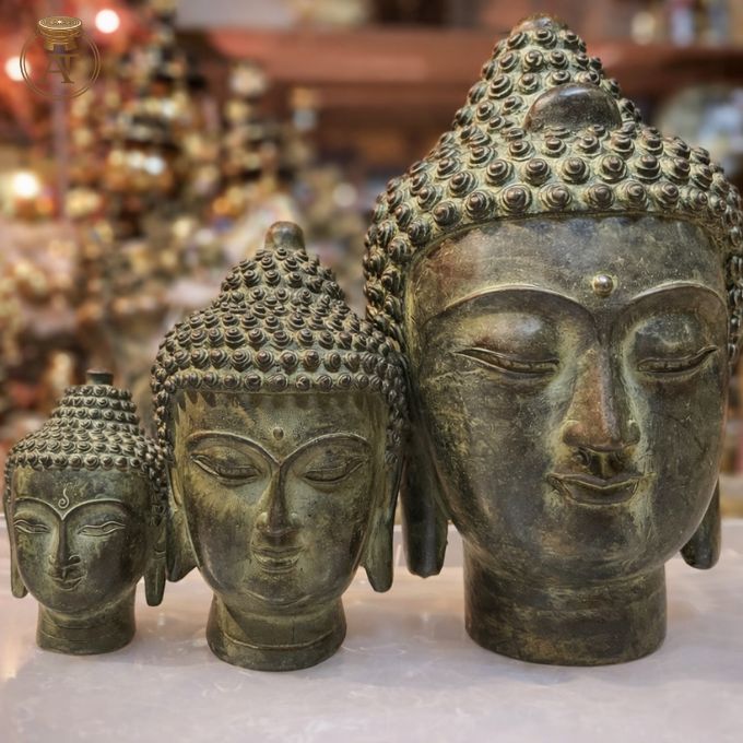 Được chế tác từ chất liệu đồng bền vững, tượng đầu Phật trở thành biểu tượng linh thiêng, giúp kết nối không gian sống với năng lượng tâm linh thuần khiết.