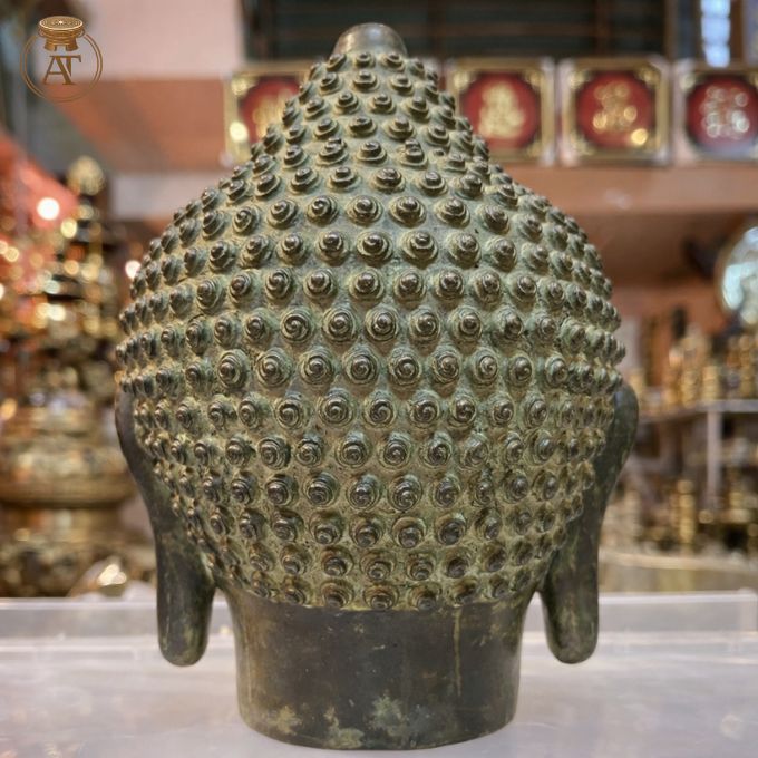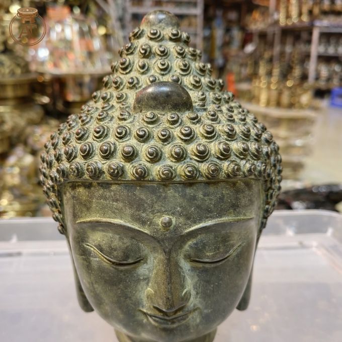 Tượng đầu Phật bằng đồng là hình ảnh biểu trưng cho trí tuệ giác ngộ và lòng từ bi của Đức Phật. Tác phẩm không chỉ mang giá trị nghệ thuật mà còn thể hiện chiều sâu trong tư tưởng Phật giáo.