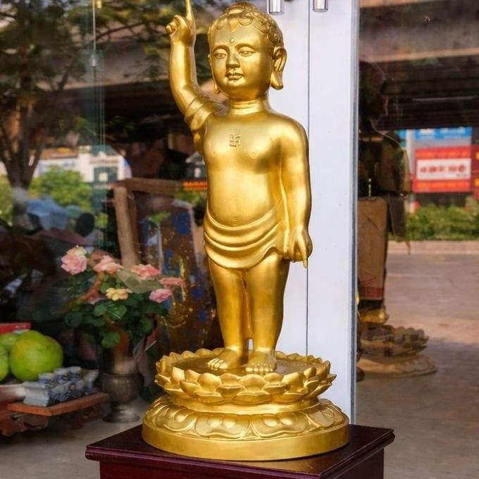 Tượng đồng Phật Đản Sanh tái hiện khoảnh khắc Đức Phật sơ sinh với thông điệp giác ngộ vũ trụ.