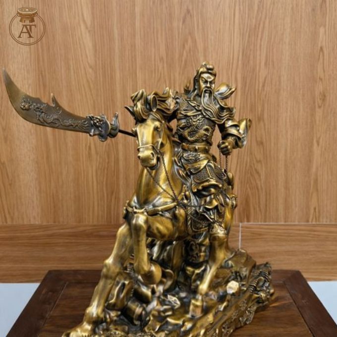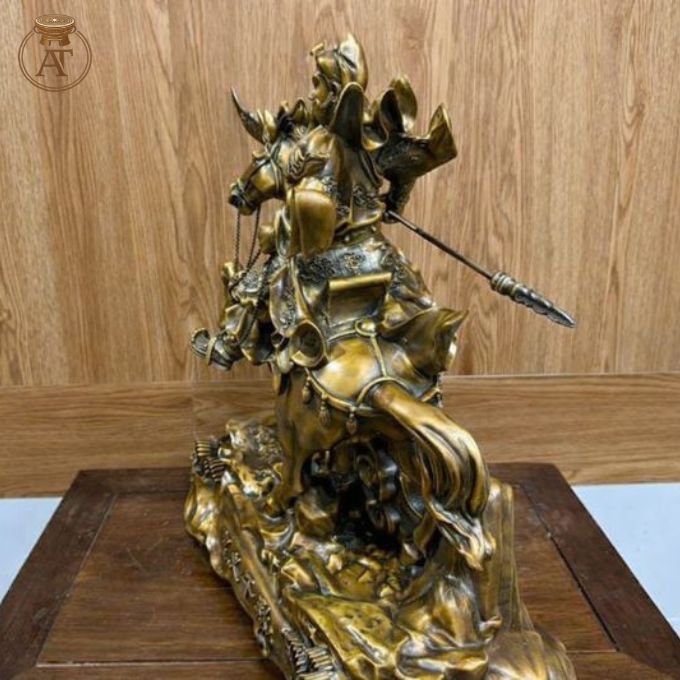 Tại Đồ Đồng An Thịnh, tượng Quan Công cưỡi ngựa được chế tác thủ công từ đồng cao cấp. Tượng không chỉ có giá trị nghệ thuật, mà còn mang đến sự bảo hộ và thuận lợi cho gia chủ.